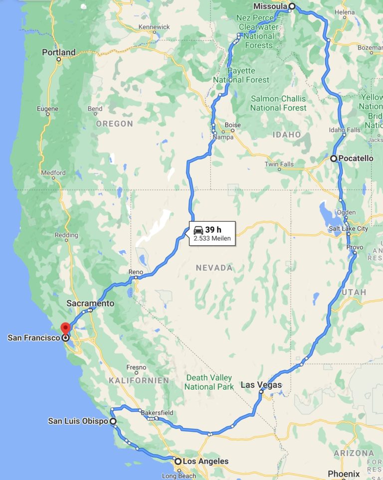 Los Angeles - San Luis Obispo - Yellow Stone - Missoula - San Francisco